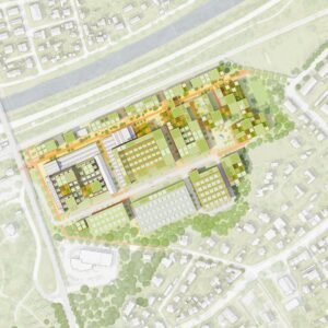 While we extend our heartfelt congratulations to ASTOC architects and planners GmbH Cologne/Karlsruhe with Henning Larsen GmbH, Überlingen, for securing the first prize, we seize this opportunity to delve into the details of our green design proposal, titled “URBAN FABRIC Lörrach.”