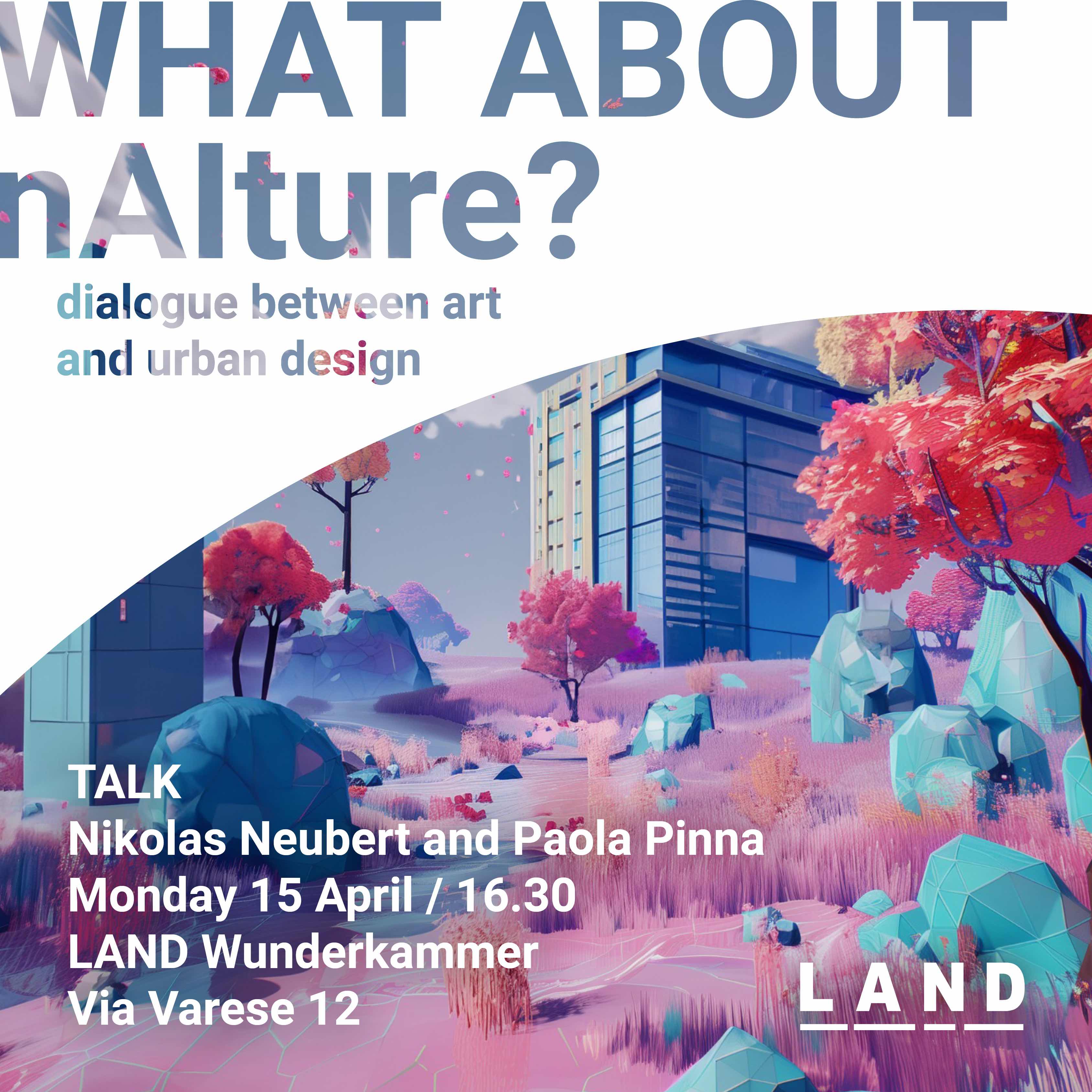 Investigating the relationship between nature, artificial intelligence and urban space through the mediation of art is the aim of the talk launched by LAND on the occasion of the Fuorisalone at Milan Design Week 2024. A debate evocatively titled "What about nAIture? dialogue between art and urban design", which will see Nikolas Neubert, CIO of LAND, discussing with the well-known digital artist Paola Pinna in the Wunderkammer exhibition space in via Varese 12.