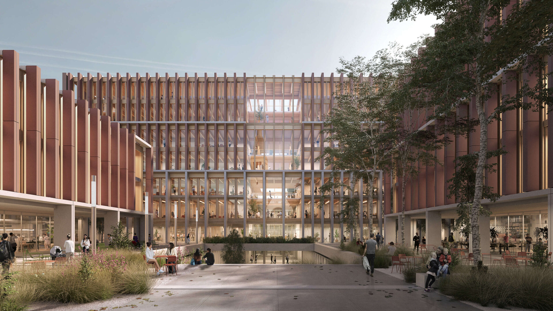 The masterplan is based on a solid network of public spaces to strengthen ecological, social and cultural interactions. The campus will become an urban recreational space, with nature permeating the area in various forms.