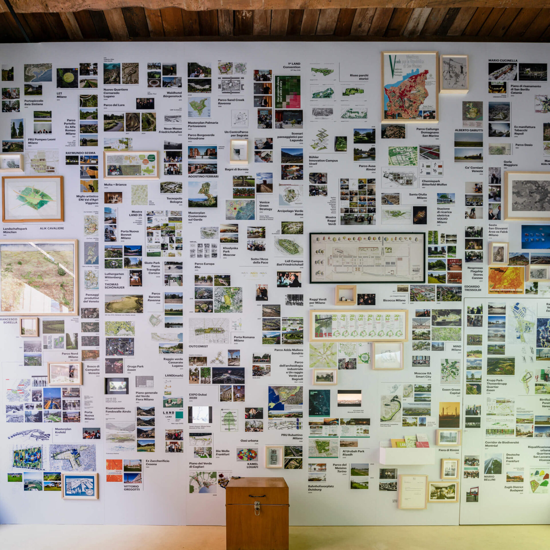 A Wunderkammer, or wonder-room, as we know it from past centuries, is a collection of marvelous things. Wonder, amazement and whole-hearted, curiosity-driven learning still now retain their power. The fascination that was once felt for rarities in a cabinet of curiosities is now reflected in the fascination aroused by LAND’s work with nature as it plans and implements concepts for people. Over three decades of LAND’s ideas, plans and projects are gathered together in this Wunderkammer, created in 2021 at Via Varese 12 in Milan